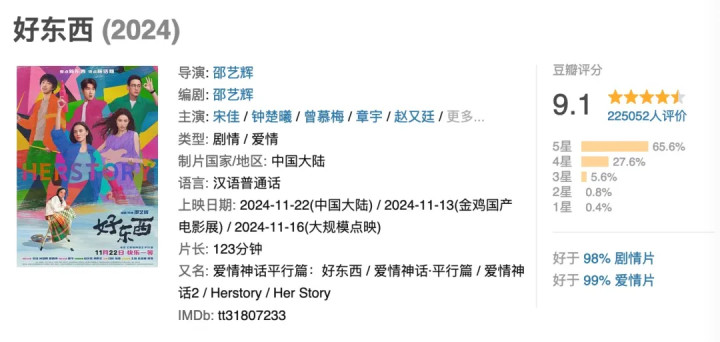 这倒亦然意象之中的事情,毕竟,本片的评价如实相等好,豆瓣开分就冲到9.1分了,一下就成为年度佳作了。