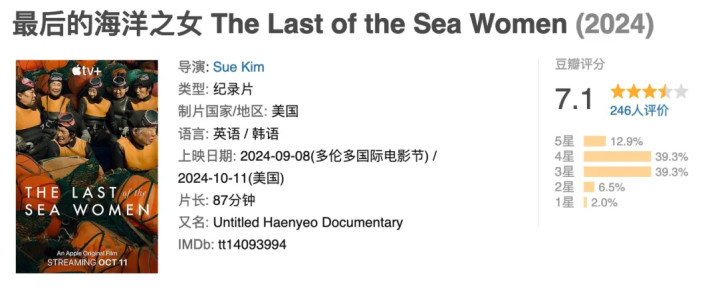 一部对于海女的记载片,Apple TV + 推出