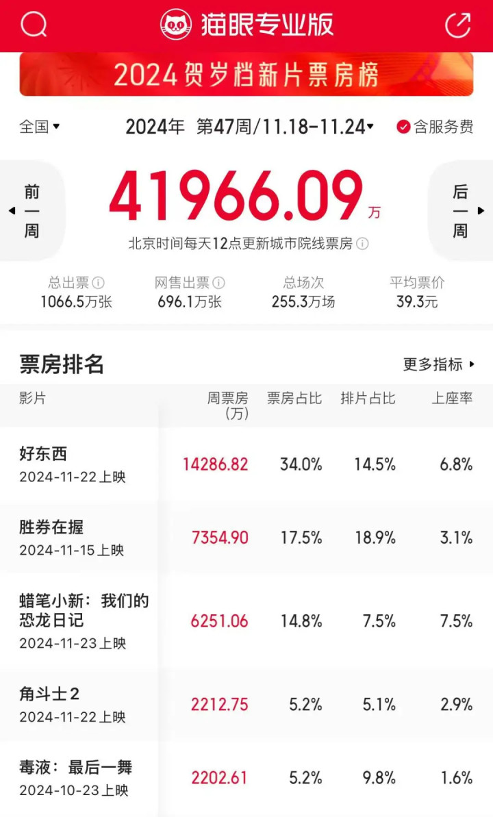 相对来讲,《角斗士2》天然在北好意思卖得相等好,可是内地票房推崇,合座也曾一般,上周只消2212万,好莱坞大片继续疲软了,唉。