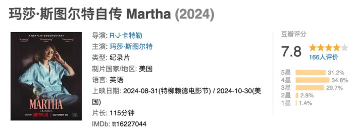 这是部记载片,对于初代网红玛莎·斯图尔特的故事,倒是也可以望望。
