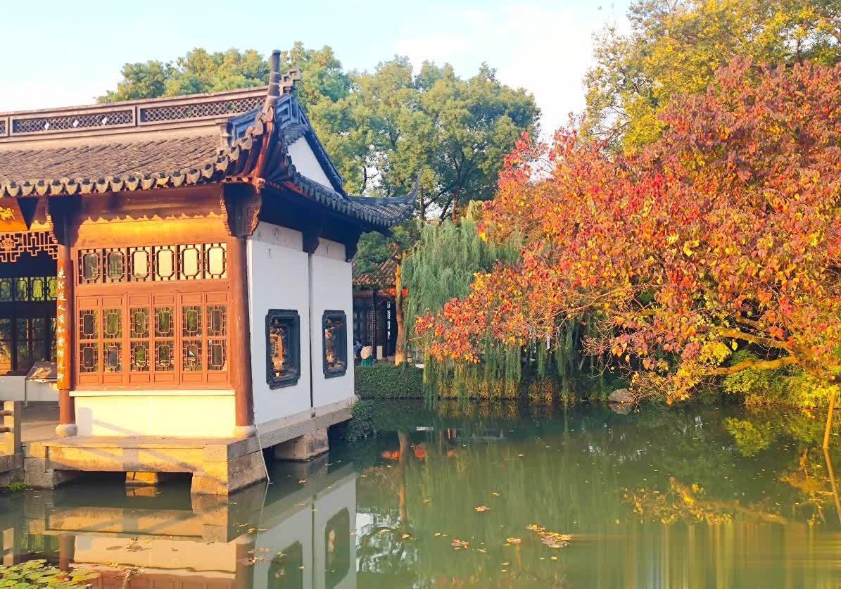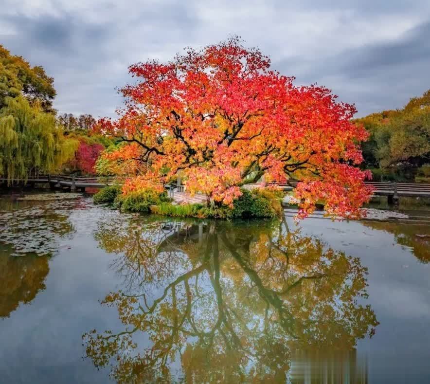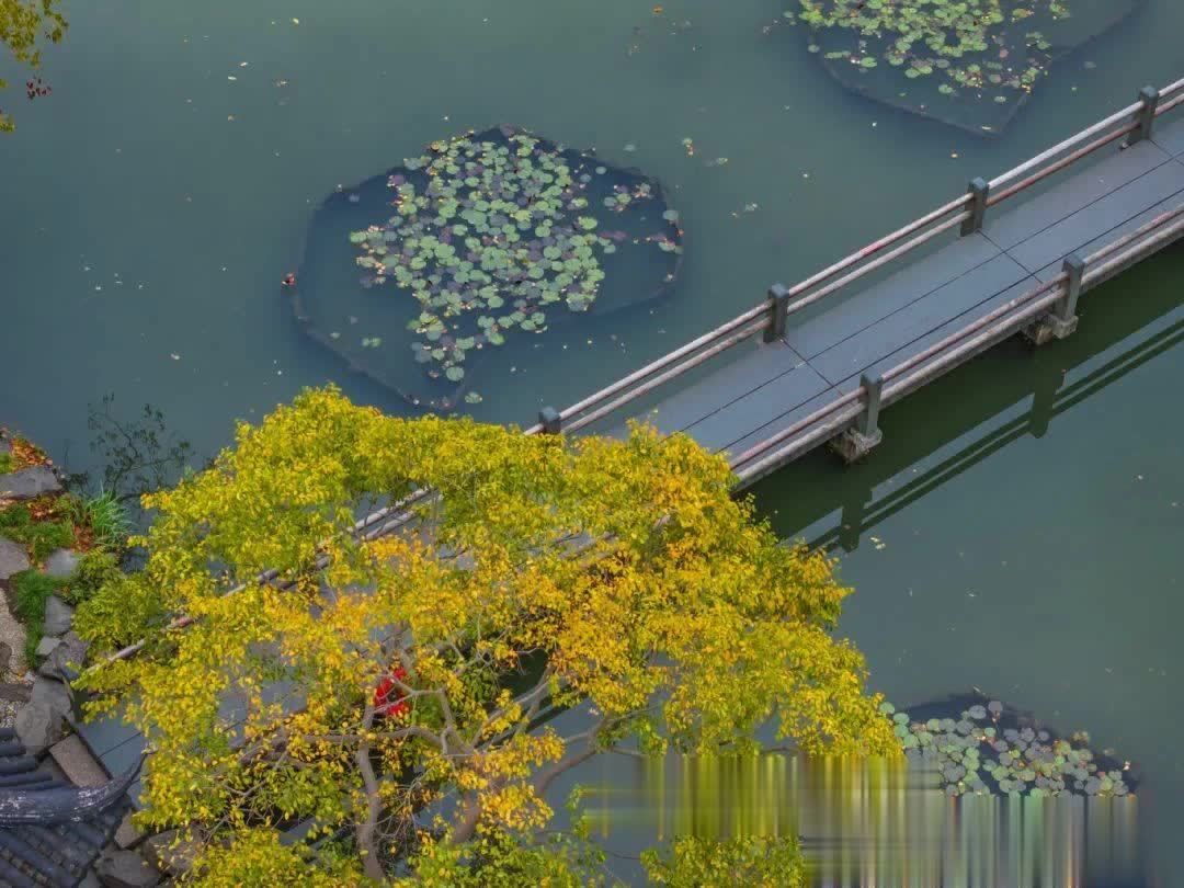其中,乌桕树以其美艳的红色夺东谈主眼球,反照在水面上,更添几分动东谈主的魔力;朴树和百年南川柳,则以它们的绿色,为这幅画卷增添了历史的安静感;而那些正处于绿转黄流程中的树木,似乎在诉说着季节更替的奥妙。