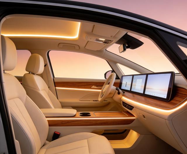ID.ERA 9X定位中大型旗舰SUV,车身尺寸5207mm×1997mm×1810mm,轴距达到3070mm,空间表现越级。新车接收2+2+2大六座布局,第二排孤独 captain 座椅,座座皆平权,每一转都有填塞头部与腿部空间,老东谈主孩子乘坐不压抑。