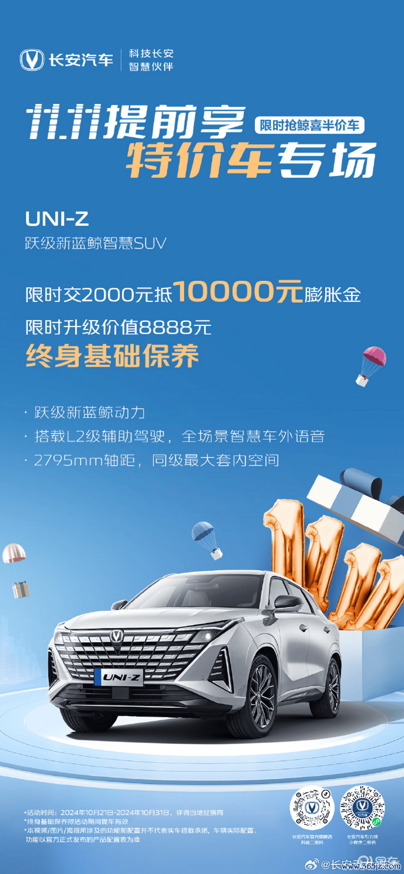 长安UNI-Z可享受,限时交2000元抵10000元膨大金,限时升级价值8888元终生基础诊疗。