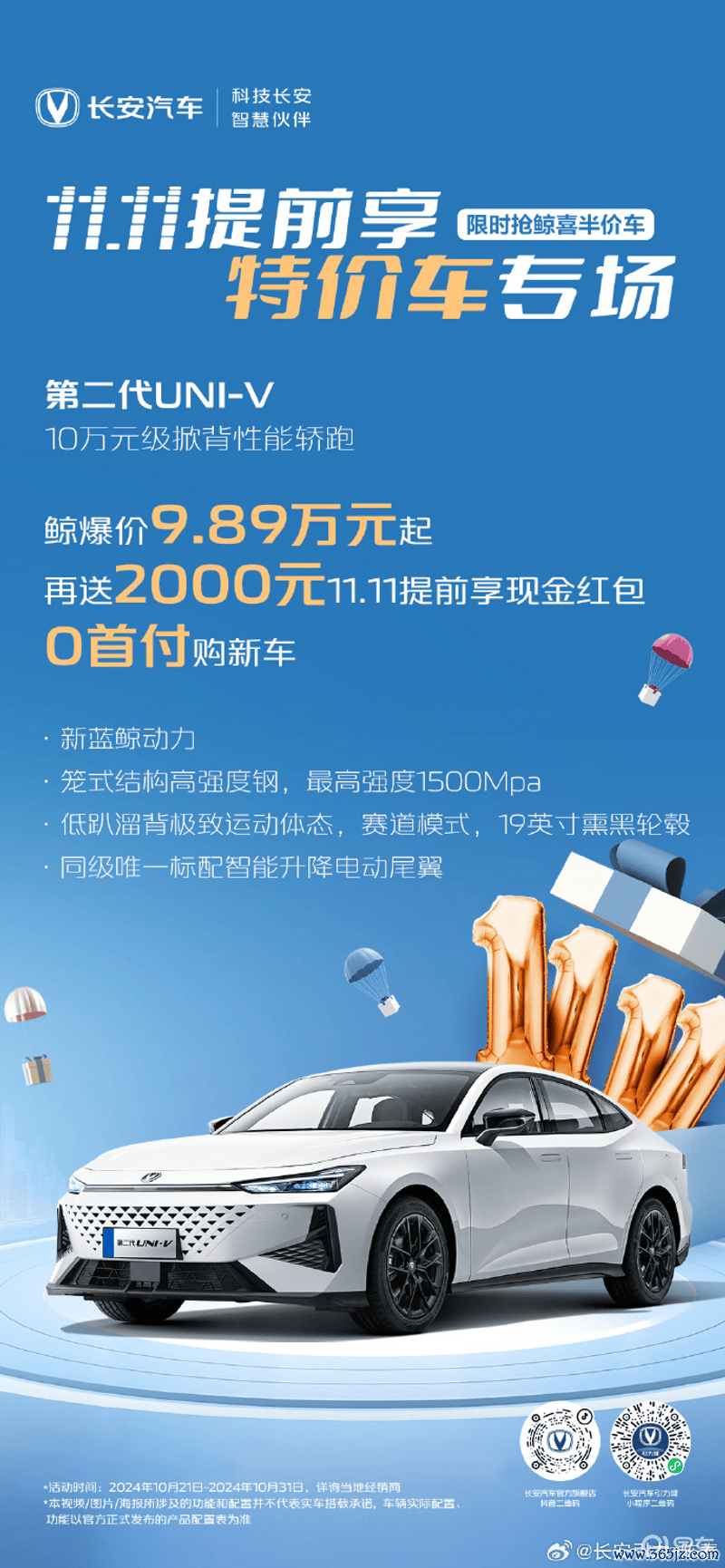 第二代UNI-V可享受,鲸爆价9.89万元起,再送2000元11.11提前享现款红包,同期可享0首付购新车。