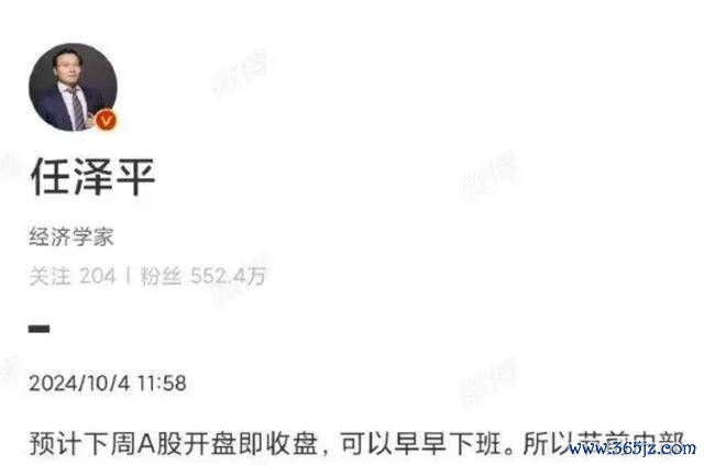 A股市集近期的火热,源于任泽平的强烈言论。他在10月4日的谈话中,犹如一剂强心针,给投资者带来了但愿。任泽平行为经济学界的“神预言家”,他的发言当然备受珍摄。当他提到“下周A股开盘就得收盘”时,投资者的心思无疑像坐上了过山车,顿然被推向了顶点。很多东说念主驱动从头评估我方的投资策略,纷纷在酬酢媒体上发声,抒发对将来市集的期待与担忧。