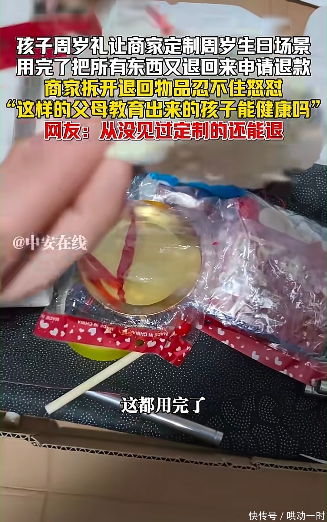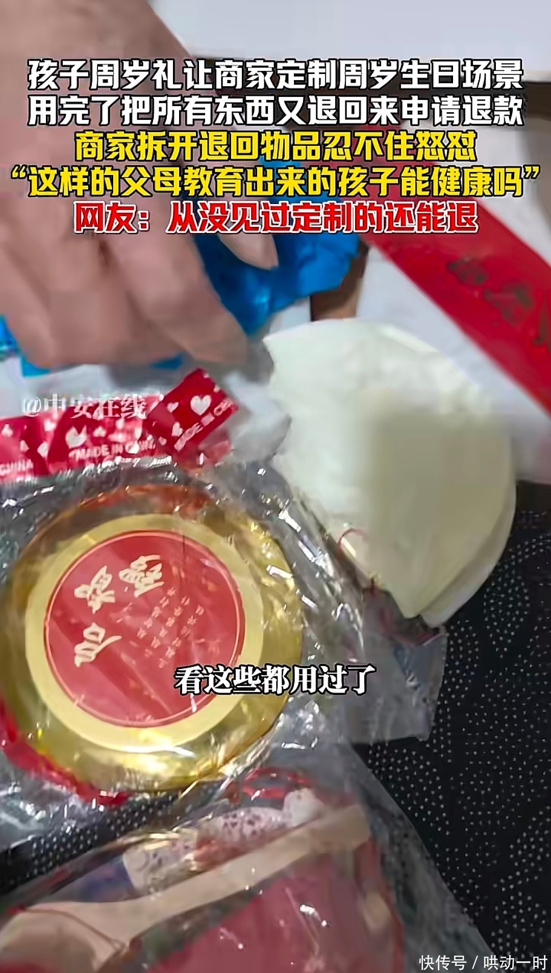现实给出了确定的谜底。2026年1月21日,河南商丘又名快递员在网罗曝光了一桩令东谈主啼笑齐非的事件:一位家长在为孩子办完周岁宴后,竟将使用过的定制化嘱咐物料一谈打包退回商家,并堂王冠冕地央求了全额退款。当商家间隔包裹的一刻,震怒须臾爆发,告成在网罗上公开控诉。