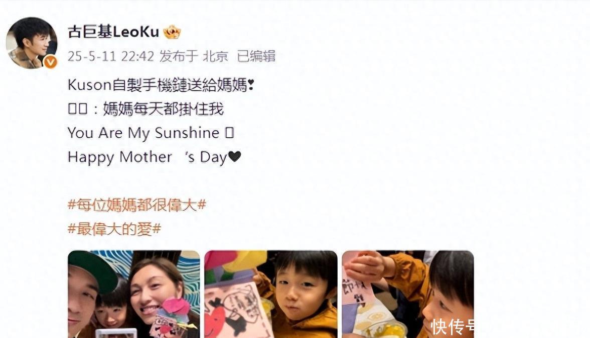 趁着母亲节的契机,古巨基难得晒出了与浑家和犬子的合照,共享家庭的幸福感。像片中,一家三口整整皆皆地亮相,温馨氛围险些要溢出屏幕。