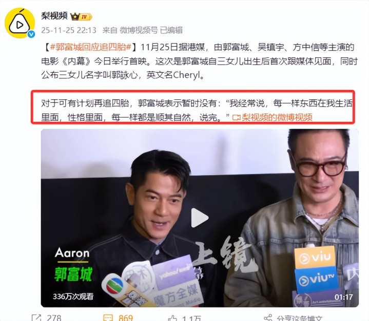 郭富城全程皆在共享赤子子降生的幸福,从未说起过再生的思法。