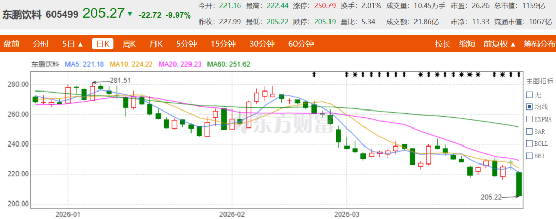 2026年3月31日,A股商场再现“白马股惊魂”。刚刚交出年度“收获单”的东鹏饮料,股价开盘即大幅跳水,盘中跌幅一度面临跌停。