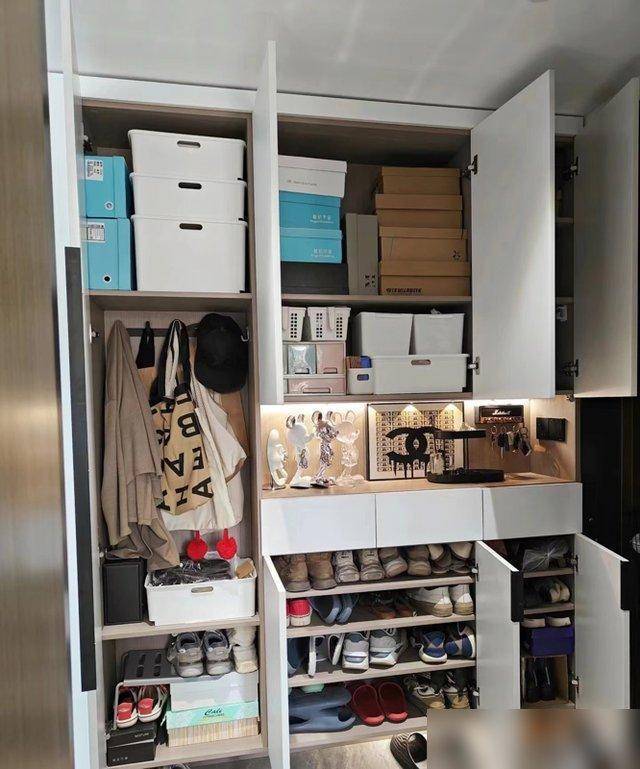 就说玄关吧,当今年青东说念主总把“庆典感”挂在嘴边,但庆典感哪是贴大理石墙能装出来的?你想,放工开门的斯须,感应灯“叮”地亮起来,像家里有个东说念主在等你;钥匙径直扔在30公分的小格子里,不必翻包翻得七手八脚,连口罩齐有地儿放——这份“顺遂”,比冷飕飕的水晶灯暖十倍。玄关柜不作念拉手,摸着顺滑莫得趔趄,打扫时连死角齐莫得,你说,装修不即是为了“省劲儿”吗?