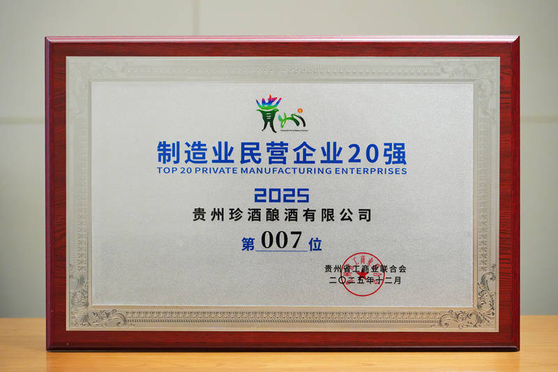 12月24日,贵州省工买卖聚首会在贵阳召开2025年贵州民营企业100强发布会,发布“2025贵州民营企业100强榜单”和“贵州制造业民营企业20强”榜单。贵州珍酒以苍劲抽象实力,位列贵州民营企业100强第10位、贵州制造业民营企业20强第7位,蝉联贵州民营酒企第一。
